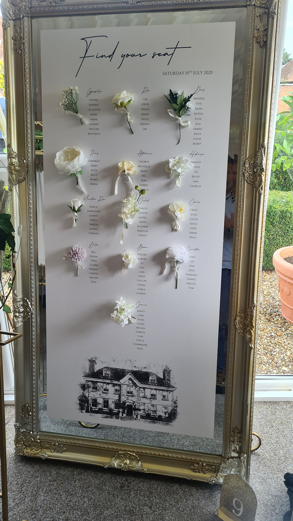 Seating plan - botanical theme - hire incl flowers